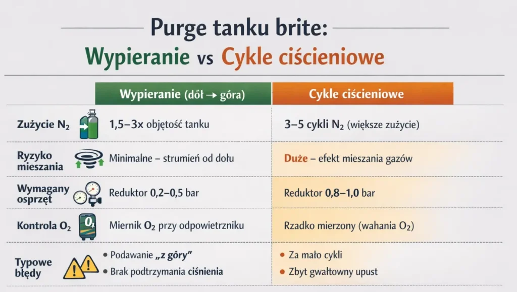 Dlatego przed napełnieniem tanku brite wykonuje się jego płukanie azotem lub CO₂, by wypchnąć powietrze (czyli głównie tlen) i stworzyć środowisko obojętne.